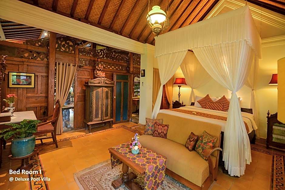 Spacious villa features 2 bedrooms, a private swimming pool and well-equipped kitchen. Surrounded by tropical gardens, it also comes with an open plan dining area and a living area with beautiful Javanese-style interiors.